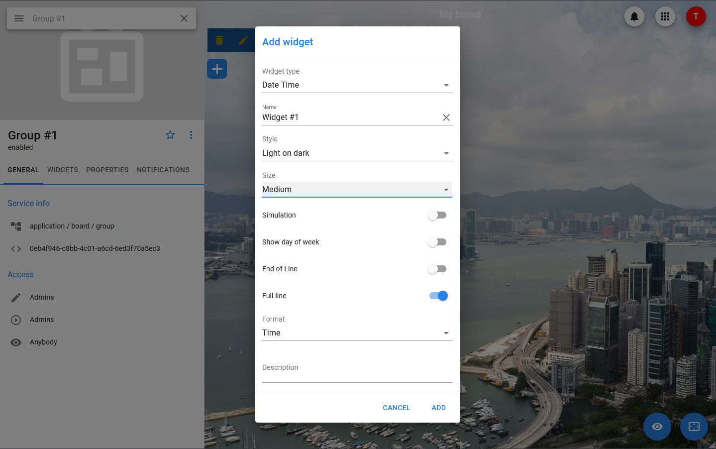 For this widget, you can configure the theme and size, as well as the format for displaying the date and time: it can display only the date, only the time, date and time with or without the day of the week.