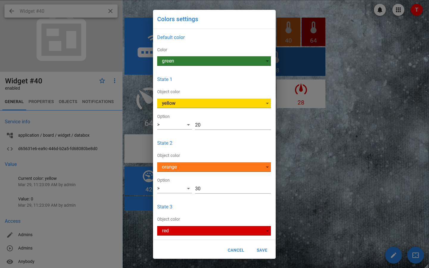 - Optional colors — the widget can change the color depending on what value it takes.